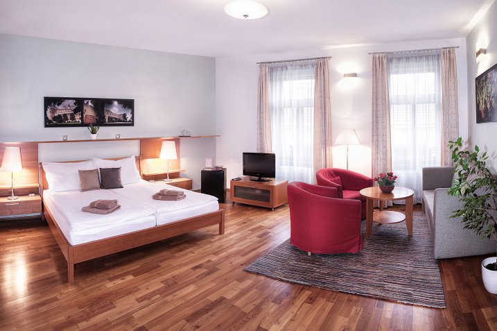 Location and view1st floor overlooking Dietrichstein chateau and scenic Husova streetNumber of beds2 + 1 extra bed possibleEquipmentair conditioning, shower, wi-fi, LCD TV, satellite, minibar, safe, hot drink set (kettle, coffee, tea, sugar, cream), WC, hair dryer, umbrella, 2 chairs, sofa bed, lamp + table lamps
